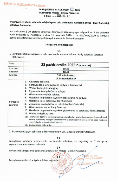 Zarządzenie Burmistrza ws. zebrania wiejskiego